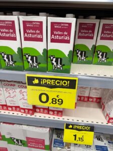 Así, se está detectando en determinados lineales la puesta a la venta, a precios reclamo, de bricks de leche que utilizan nombres y grafismos que evocan regiones de gran tradición láctea en España, como Asturias o Galicia, cuando en realidad el origen del producto que aparece es «Unión Europea».